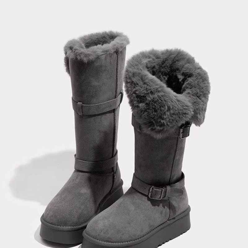 Warm Tall Boots Women Winter Snow Boots Fleece Lined Platform Thick Sole Gray High Tube High Quality Boots