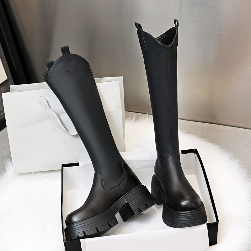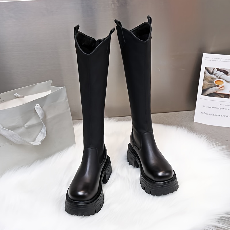 Women's Knee-High Platform Boots, New 2025 Fall\u002FWinter Collection, High-Top Boots with Back Zipper, Knee-High Riding Boots with Chunky Heel, Women Shoes